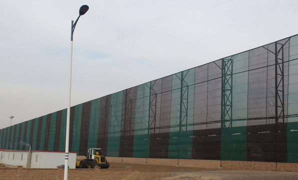 柔性防風(fēng)抑塵網(wǎng)應(yīng)用范圍相當(dāng)廣泛,在農(nóng)業(yè)上防風(fēng)網(wǎng)用于提供對農(nóng)作物的微氣候;在沙化比較嚴(yán)重的地區(qū),用于減少沙石堆積;在環(huán)境保護(hù)中,防風(fēng)網(wǎng)能減少散料物體裝卸和堆放過程中的逸散,特別適用于煤礦、焦化廠、電廠等企業(yè)工廠的儲煤場;港口、碼頭儲煤場及各種料場;鋼鐵、建材、水泥等企業(yè)各種露天料場;農(nóng)作物防風(fēng),沙化天氣防塵等惡劣環(huán)境;鐵路、公路煤炭集運站儲煤場、建筑工地、道路揚塵、高速公路兩側(cè)等。